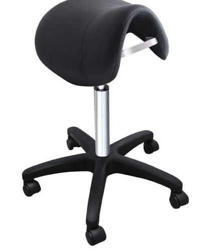 DELOVNI STOLČEK FORTUNA za frizerje, ergonomske oblike, v črni barvi. Nastavljiva višine 60-85cm.