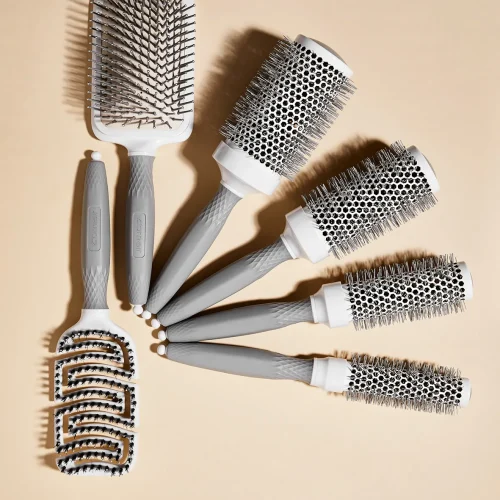Krtača za sušenje Comair Thermal Series by OLIVIA GARDEN ponuja toplotno odporno oblikovanje do 220 stopinj Celzija. Keramična prevleka ščiti lase, fine najlonske ščetine pa nežno masirajo in zmanjšujejo skodranost. Ergonomski ročaj zagotavlja udobno uporabo in impresiven volumen.